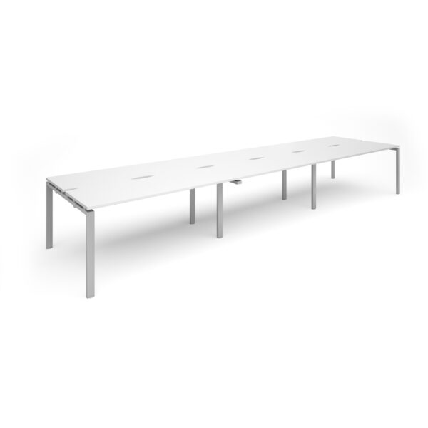 - Six straight desks in a double back-to-back bench desk configuration
