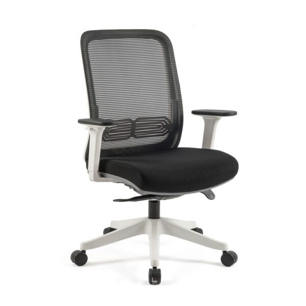 The Lotus mesh chair offers unrivalled comfort and comes with user adjustment to ensure ergonomic support for long periods of focused working. The mechanism is a self tension synchronised which allows free flowing movement and 4 position locking. The seat slide allow seat depth adjustment and combined with the seat height adjustment its suitable for a wide variety of user heights. The arms are height adjustable with a soft PU arm pad. Lotus is available in black mesh back and black fabric seat with a choice of black and white components.