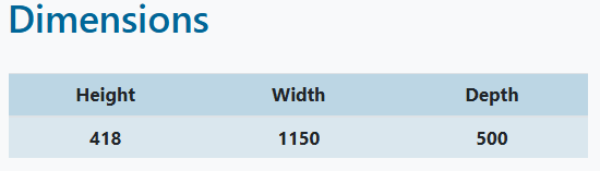 Dimensions 1100 × 500 × 418 mm