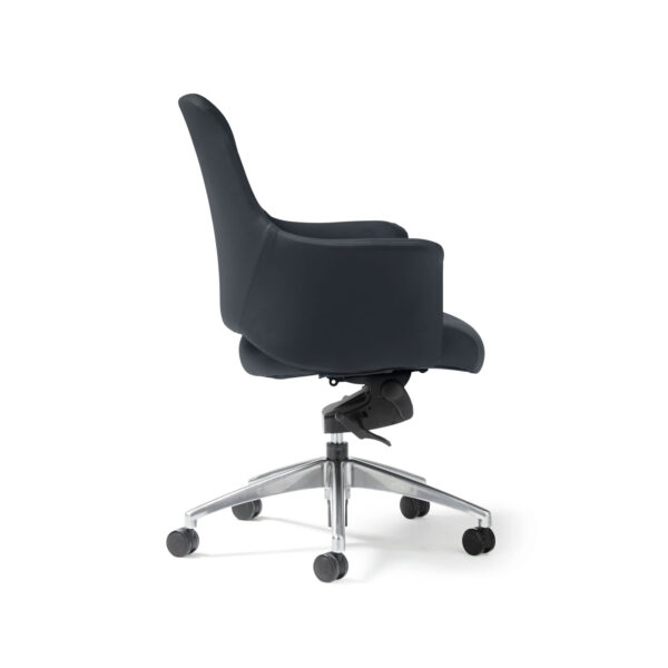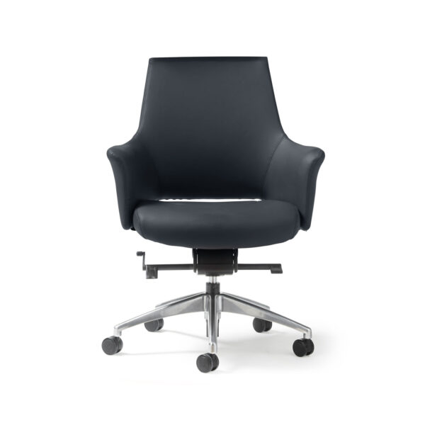 The Temp executive range is available in medium and high back design and is ideal for executive space as well boardroom environments. The black faux leather is durable and creates a feel of luxury. Integrated and upholstered arms add to the overall styling of the chair.